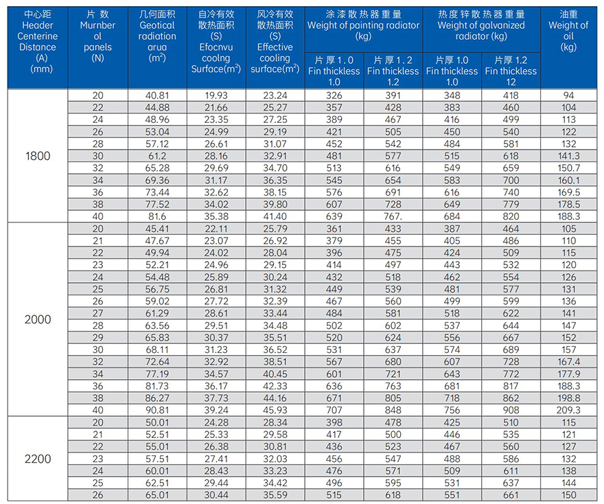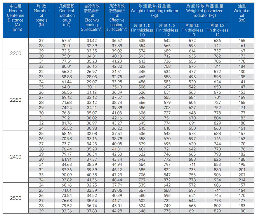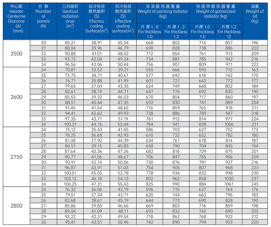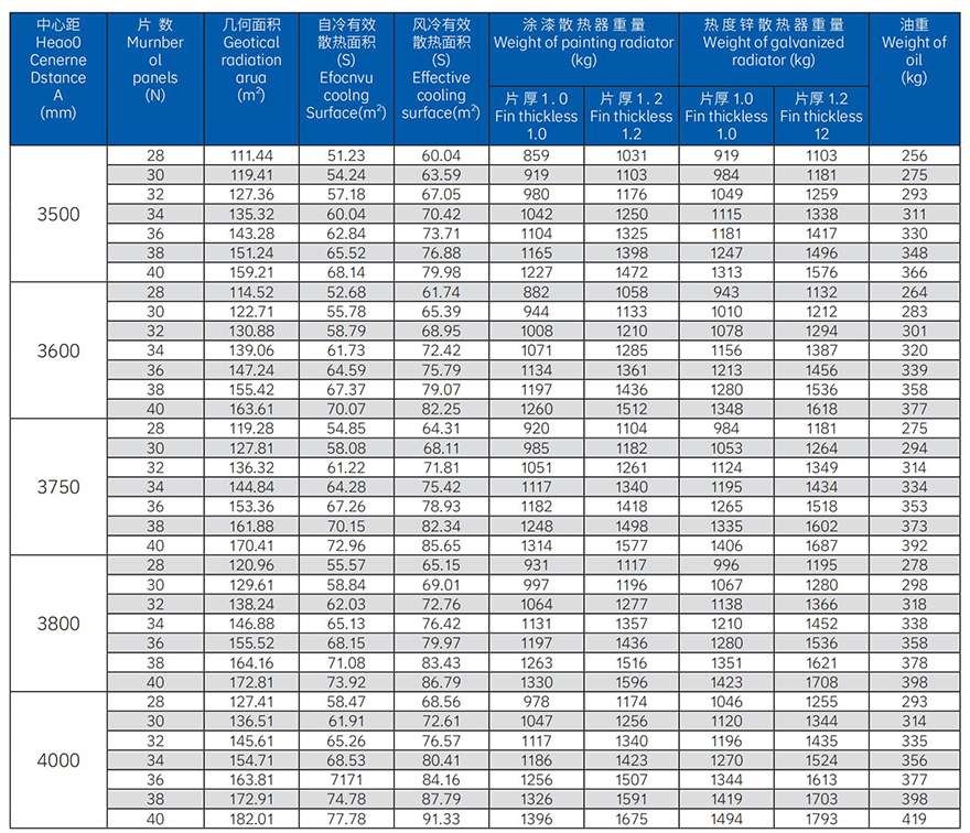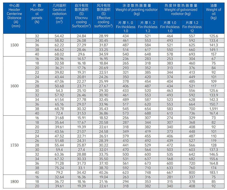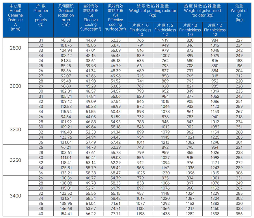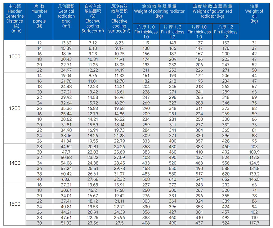PARAMETERS OF 520MM PLATE TYPE RADIATOR